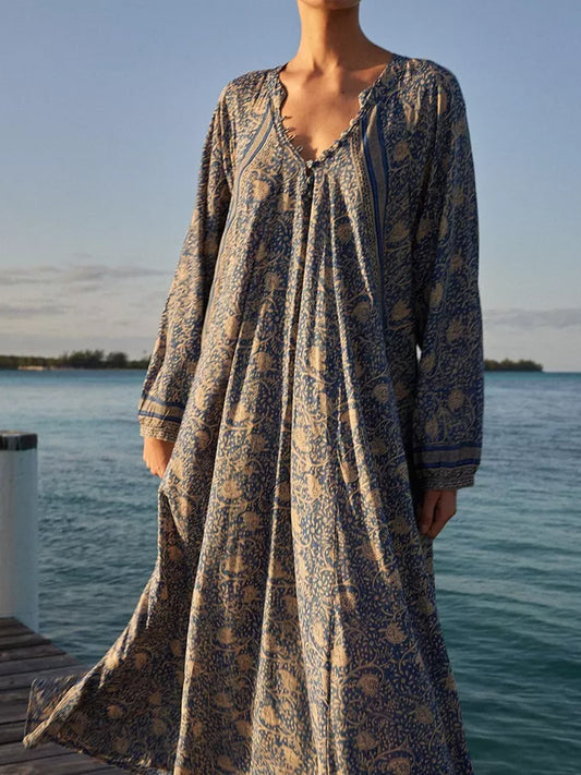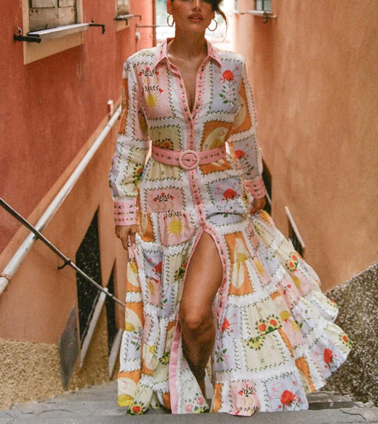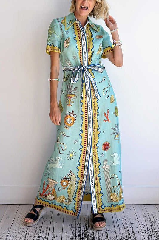 Hand-drawn Holiday Stamp Printed Midi Dress