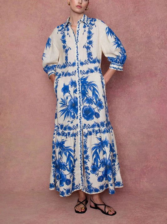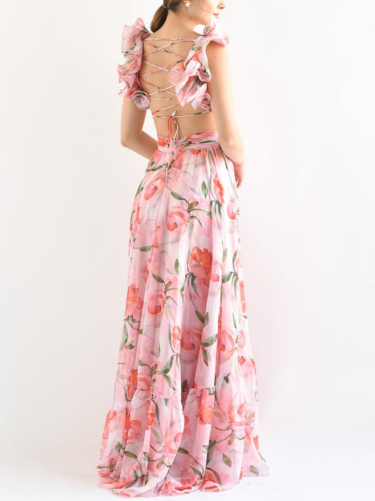 Butterfly Sleeve Midi Dress - Pear Blossom Print