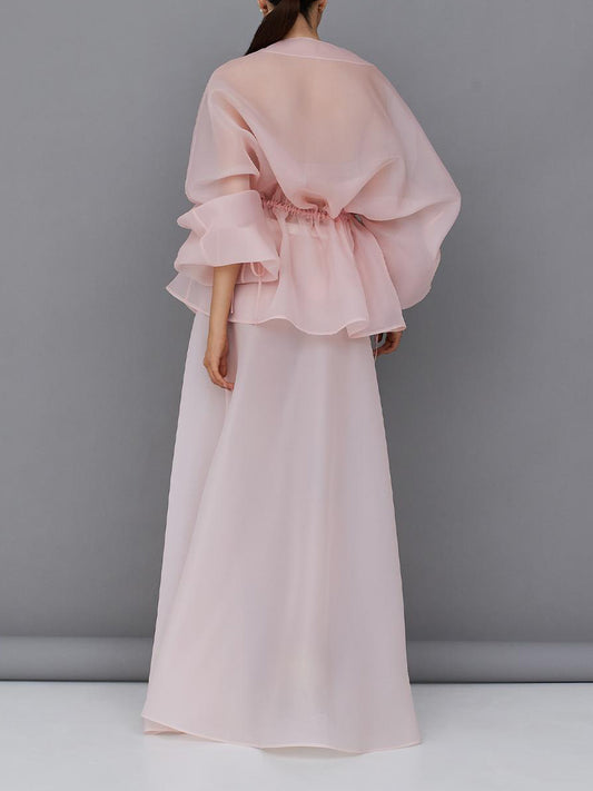 Fashion See-through Mesh Drawstring Belted Cardigan Top