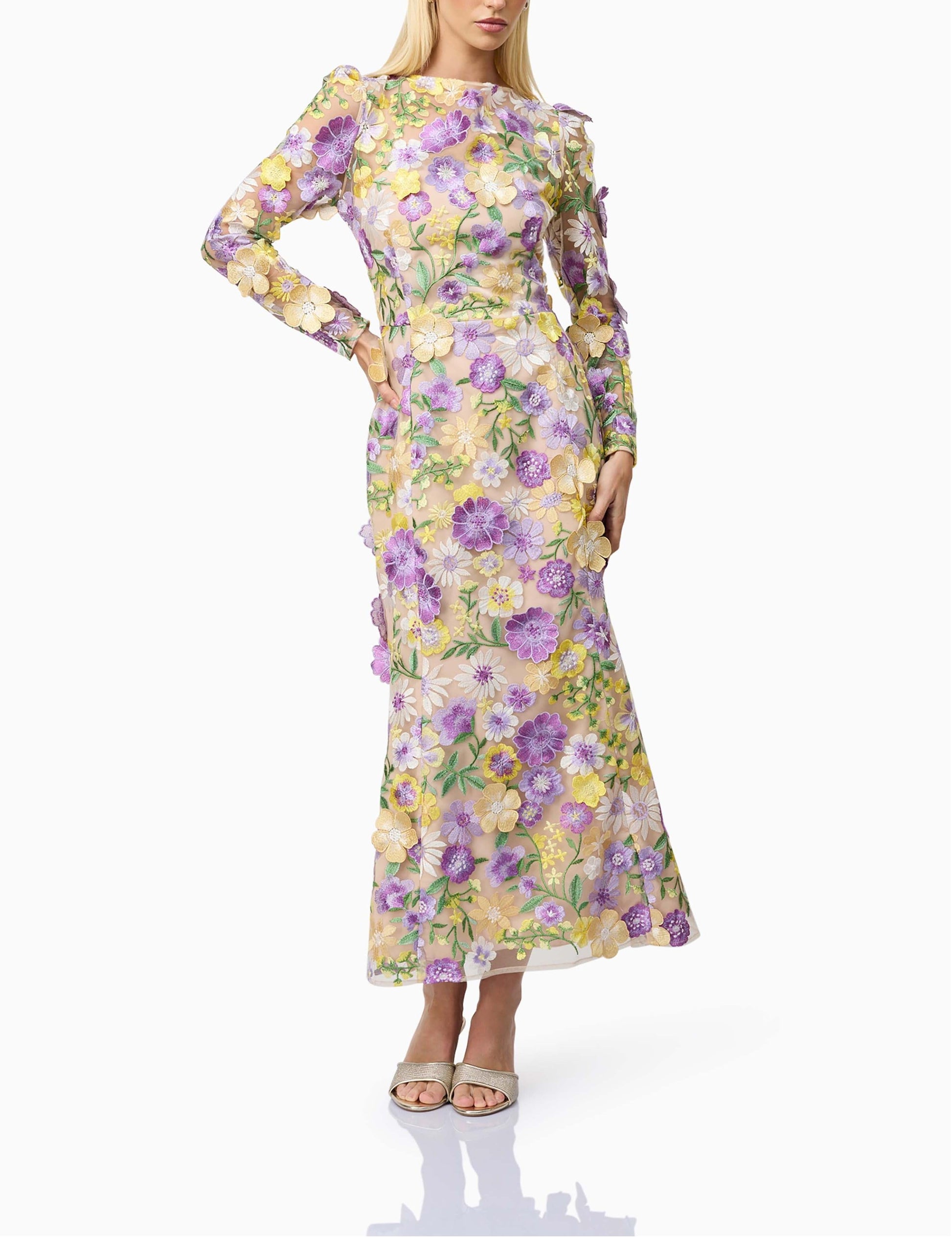 3D Floral Midi Dress