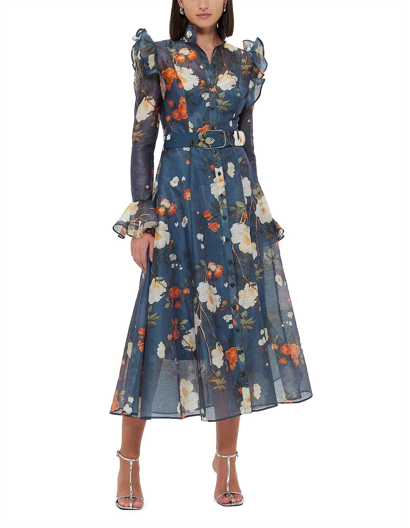 Butterfly Sleeve Midi Dress - Pear Blossom Print